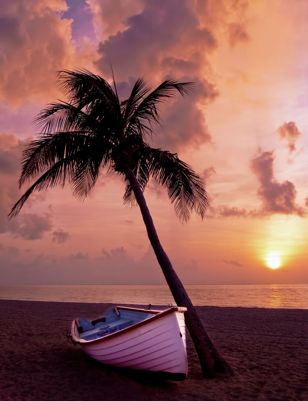 03.03.017 - Bootje bij palmboom op het strand - Staand