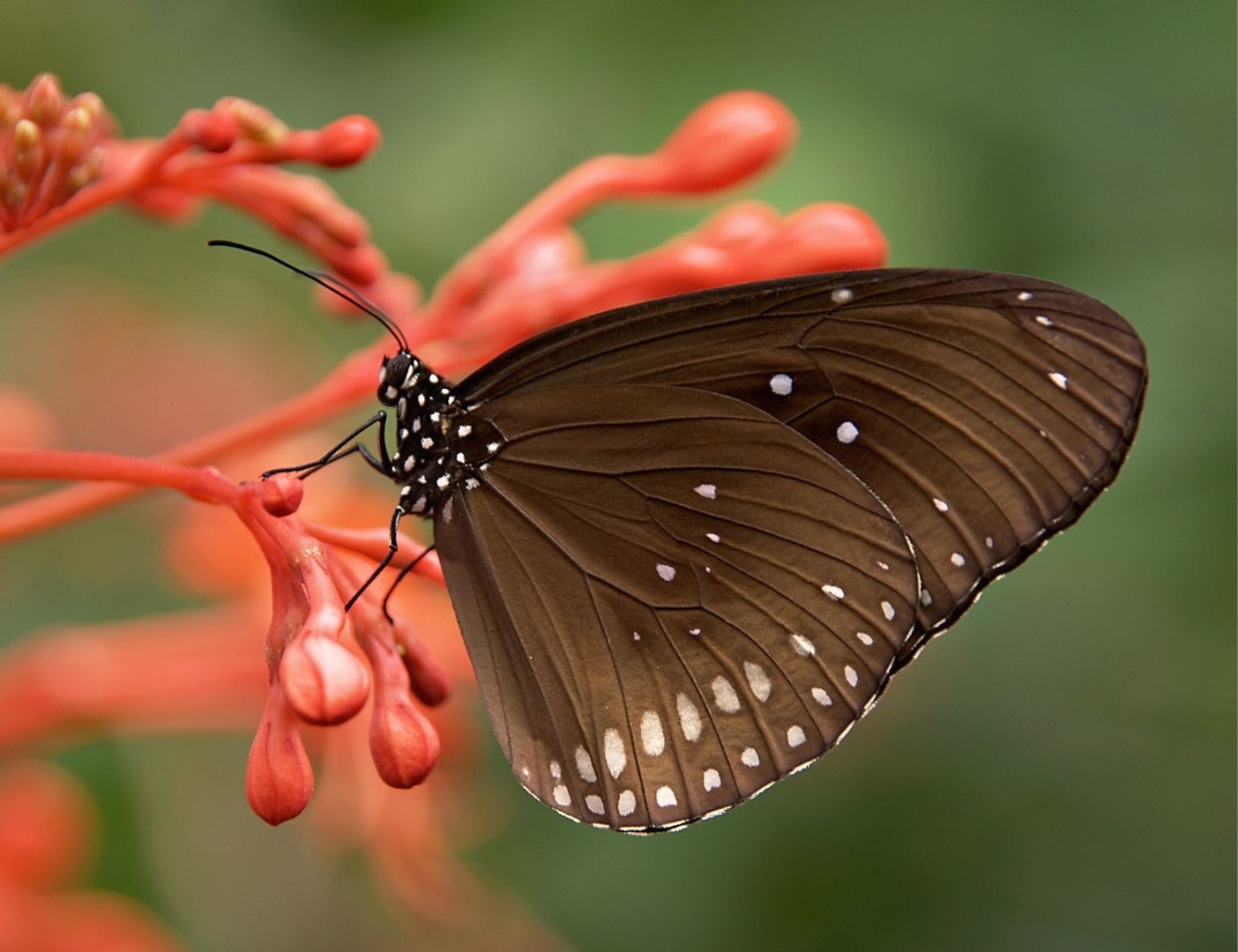 03.07.002 - Bruine vlinder op rode bloemen - Liggend