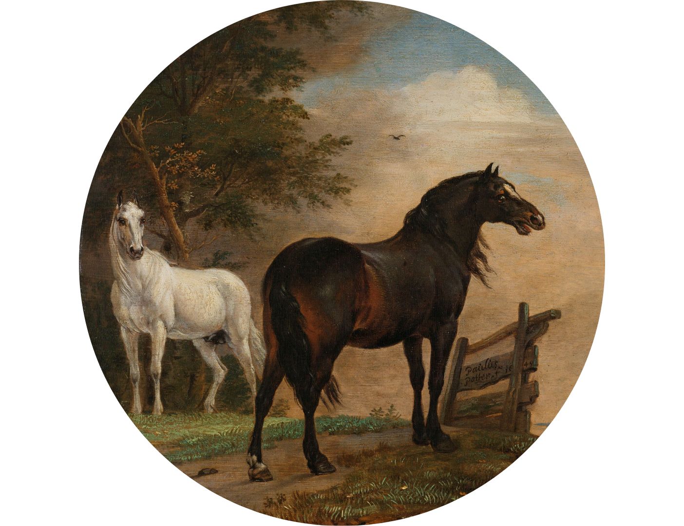 Twee paarden in de wei bij een hek, Paulus Potter, ca.1649.
